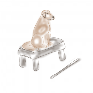 Välj gärna en möbel hunden inte brukar vara på som en stol, kökspall eller liknande. Hjälp hunden att: